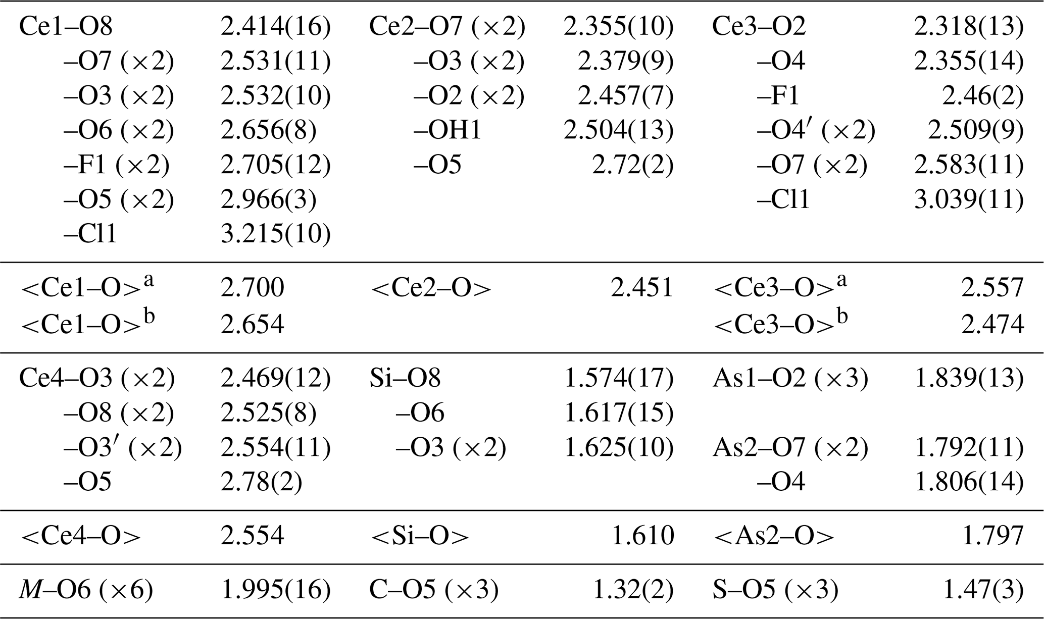 Table 4Selected interatomic distances (Å) for åsgruvanite-(Ce).