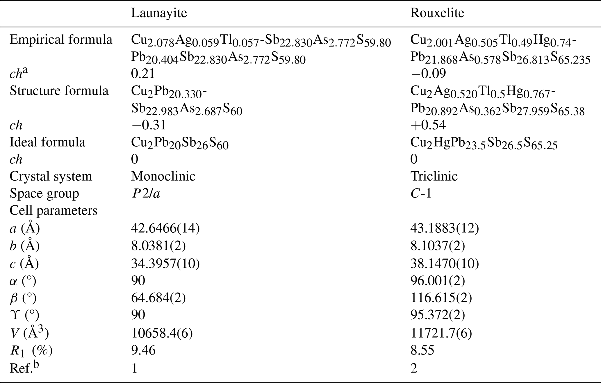 Table 6Comparative data for launayite from Taylor Pit, Madoc, and rouxelite from the Monte Arsiccio mine for Z=4.