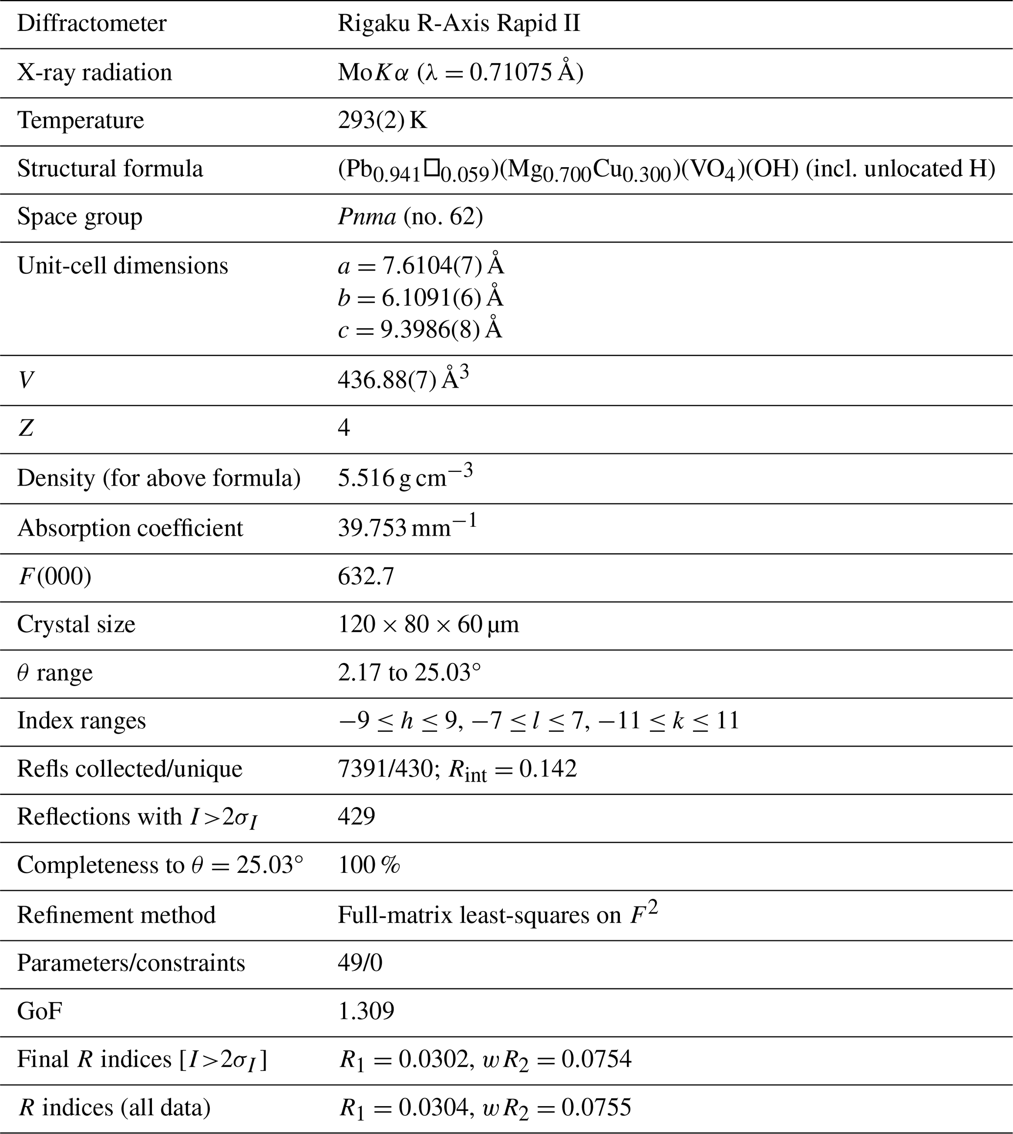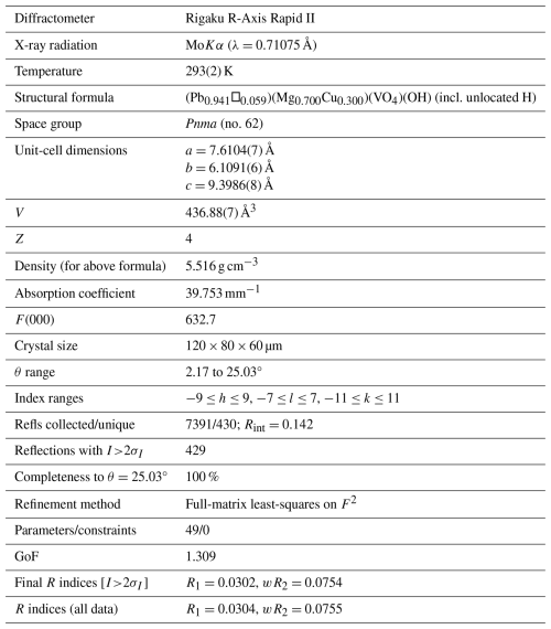 Table 3Data collection and structure refinement for plumbogottlobite.