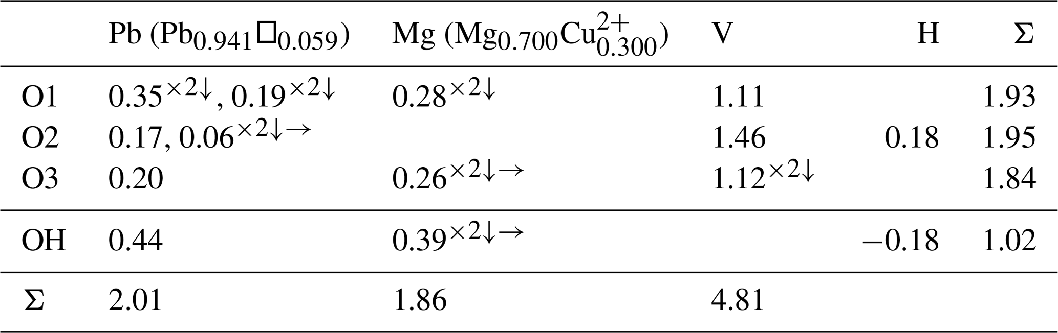 Table 6Bond valence analysis for plumbogottlobite. Values are expressed in valence units (vu).